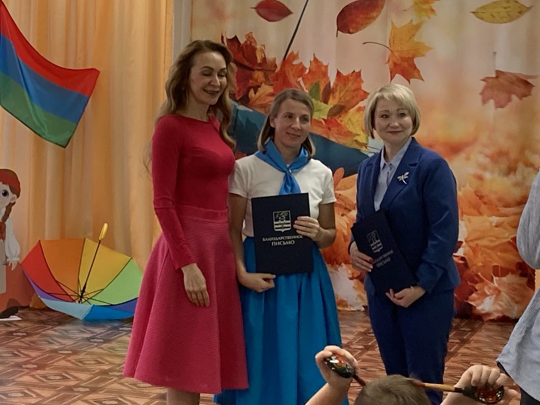 Сегодня Председатель Петрозаводского городского Совета Надежда Ильнуровна Дрейзис посетила наш детский сад, чтобы поздравить педагогический коллектив С Днем дошкольного работника и выразить благодарность и преданность своему делу. Педагоги нашего коллектива были отмечены благодарственными письмами от Петрозаводского городского совета за добросовестный труд в системе образования, высокий уровень профессионализма, личностные качества. Педагоги с детьми в свою очередь подарили Надежде Ильнуровне заряд позитивной энергии, исполнив задорные танцы и песни. ВК новость https://vk.com/wall-194466489_1397